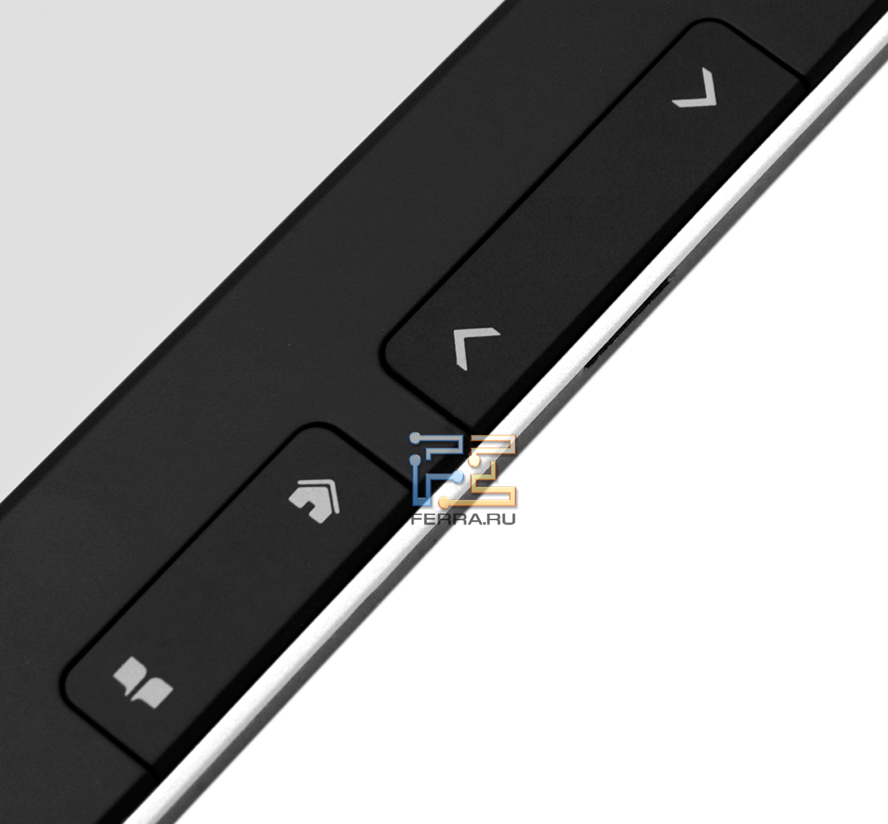 Основной инструмент для управления — навипад в форме кольца с кнопкой в центре и еще одной дополнительной клавишей рядом. Для перелистывания страниц выделена двойная клавиша у правой кромки. Еще одна такая парная кнопка там же отвечает за выход на главный экран и вызов контекстного меню. Из-за расположения элементов управления ридер будет удобен исключительно правшам — управлять им, держа его в левой руке, просто невозможно.