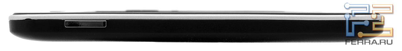 Все разъёмы сосредоточились на нижнем торце. Здесь находятся слот для карт microSD, порт micro-USB и 3,5-миллиметровый миниджек. Кроме того, сюда вынесены светодиод, индицирующий ход процесса зарядки, и крохотное отверстие Reset. А на верхнем торце расположена одинокая кнопка включения ридера.