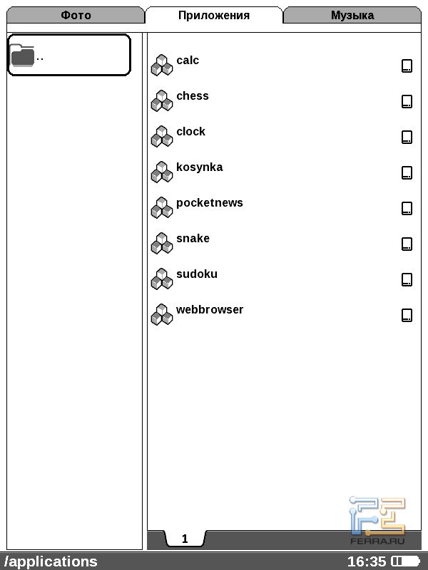 Без плеера и утилиты для просмотра изображений сегодня не обходится почти ни один электронный ридер. Понятно, что смотреть фотографии на монохромном экране с 16 оттенками серого можно лишь от безысходности, а плеер нужен только для создания музыкального фона. Впрочем, плееру в PocketBook Pro 602 стоило бы обзавестись поддержкой ID3-тегов.